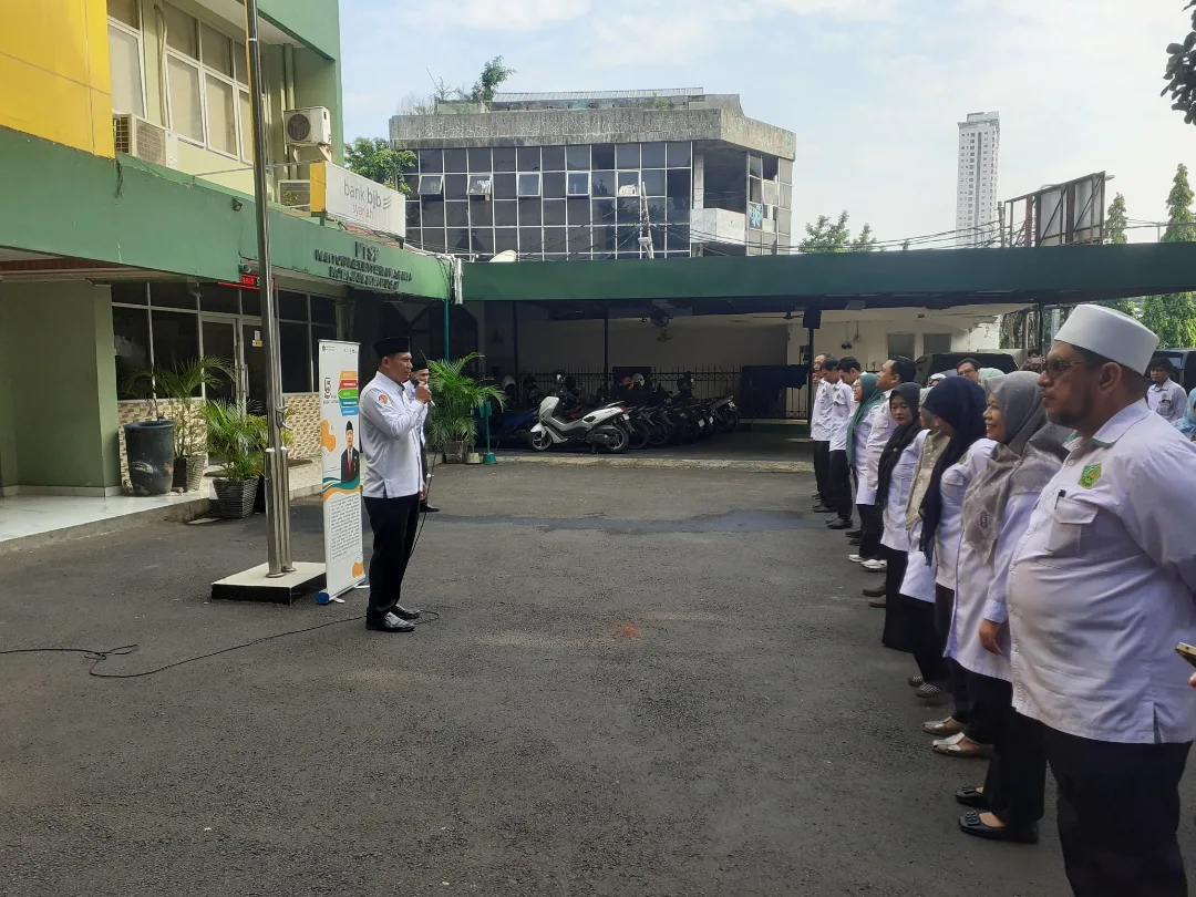Plt Kepala Subbag Tata Usaha Eka Syamsudin memberi arahan pada peserta apel pagi, Senin (08/09) Saat arahan, Beliau menegaskan agar memahami regulasi yang dibutuhkan dalam bekerja. Jangan sampai bekerja dengan dasar kemanusiaan, ingin membantu, kasihan namun akhirnya menyalahi regulasi Memahami regulasi selaras dengan 5 Nilai Budaya Kerja Kementerian Agama, yakni Integritas, Profesionalitas, Inovasi, Tanggung Jawab,