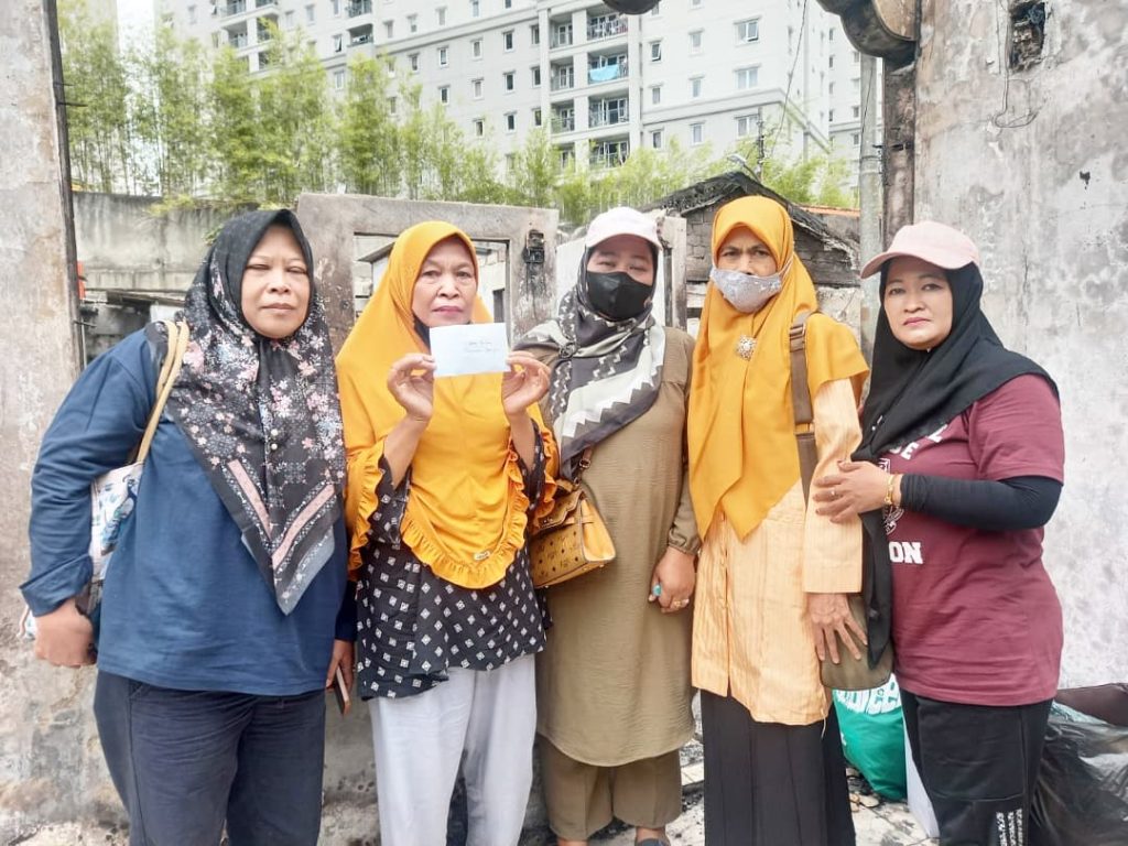 Ketua Pokjawas Madrasah Jakarta Pusat Eni dan jajaran menyampaikan bantuan pada korban musibah kebakaran di Kec Kemayoran, Jum’at (13/12)