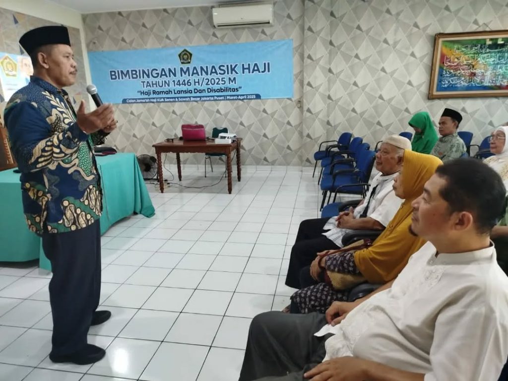 Arahan disampaikan saat Manasik Haji Tingkat Kecamatan di aula KUA Senen yang bertema “Haji Ramah Lansia dan Disabilitas” menghadirkan narasumber H. Syafrudin yang memaparkan materi Hak dan Kewajiban Jemaah Haji