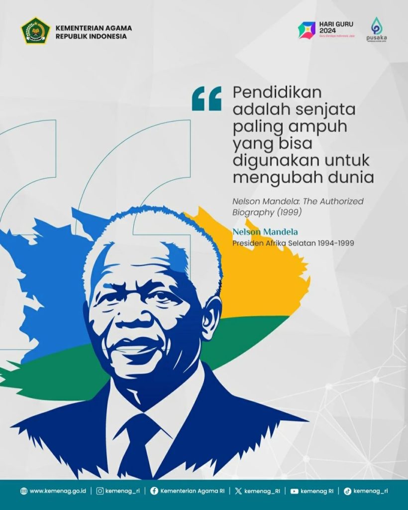 “Pendidikan adalah senjata paling ampuh yang bisa digunakan untuk mengubah dunia,” ucap Nelson Mandela (Presiden Afrika Selatan periode 1994-1999)