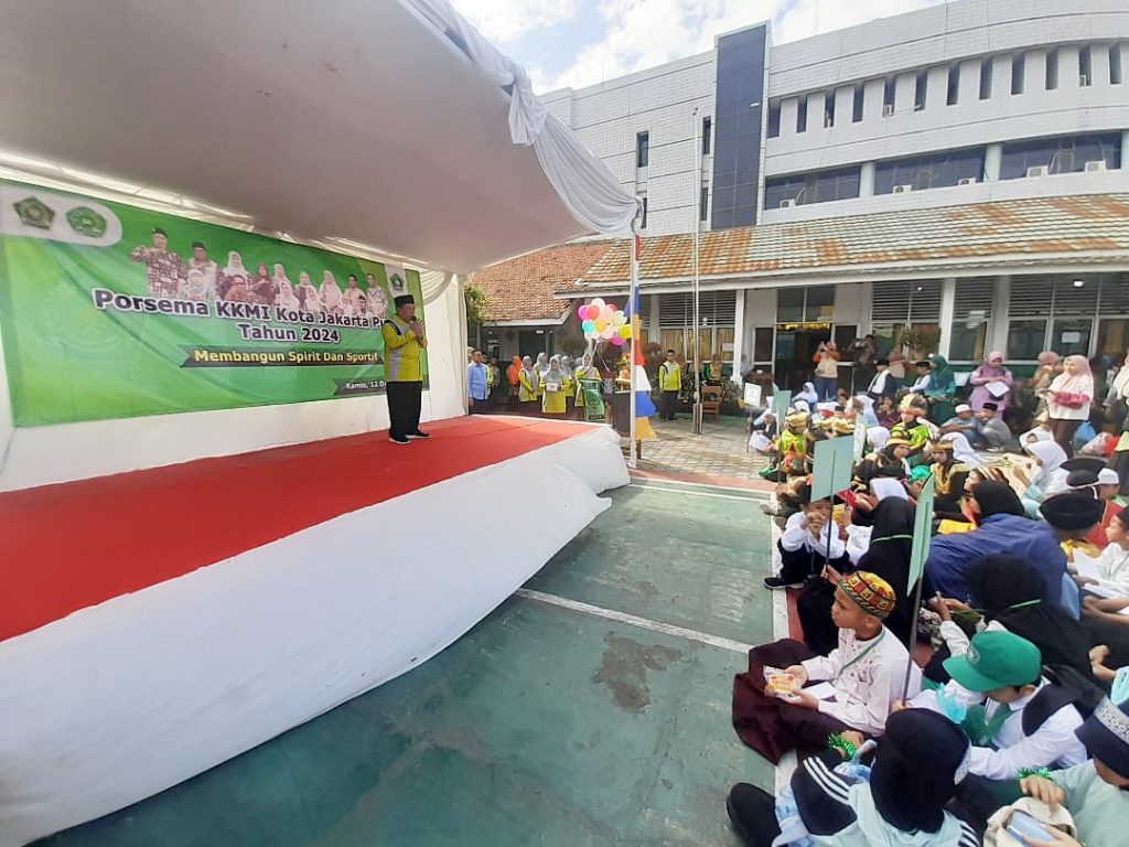 Tampak hadir ratusan siswa dari 14 MI se Jakarta Pusat mengikuti lomba atas cabang Senam P5 Putri, Futsal Putra, Kaligrafi Putra Putri, MHQ Putra Putri, Pidato Putra Putri, dan Azan Putra