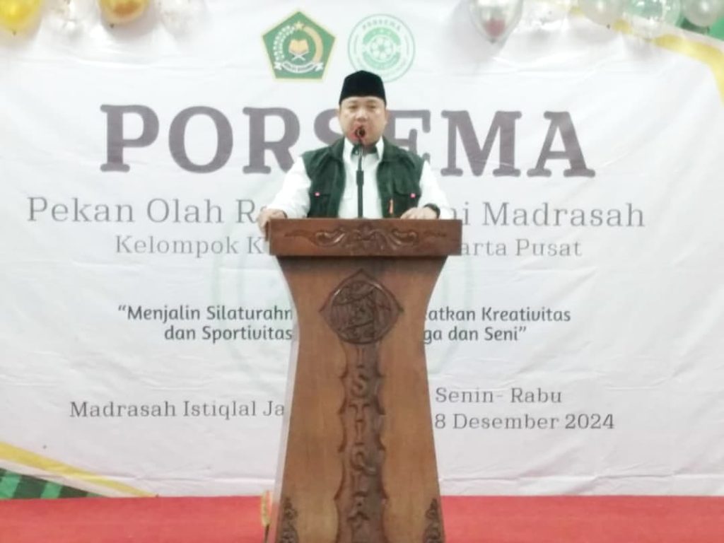 Kepala Kankemenag Kota Jakarta Pusat H. Affan Sofwan membuka PORSEMA MTs 2024 di aula Al Fatah area Masjid Istiqlal Jakarta, Senin (16/12)