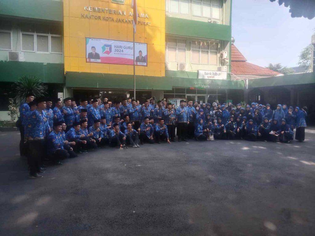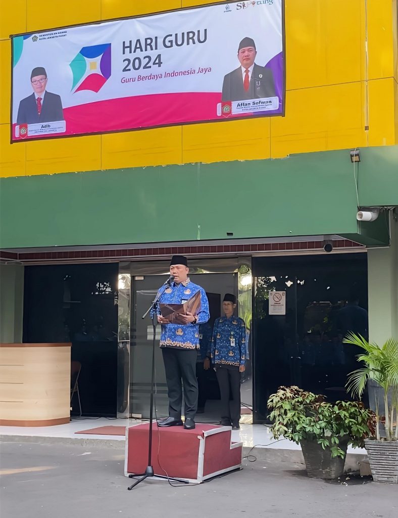 Kepala Kankemenag Kota Jakarta Pusat H. Affan Sofwan membacakan sambutan Menteri Agama KH. Nasaruddin Umar di upacara peringatan Hari Guru Nasional, Senin (25/11)