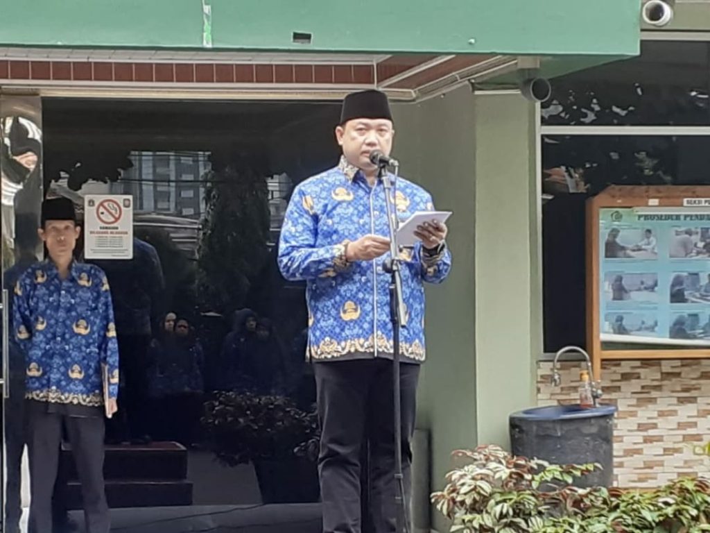 Kepala Kankemenag Kota Jakarta Pusat H. Affan Sofwan membacakan sambutan Ketua Umum Dewan Pengurus KORPRI Nasional saat upacara peringatan HUT Ke-53 KORPRI, Jum’at (29/11)